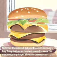 Double Cheeseburgers Rejoice on this splendid National Double Cheeseburger Day! Today beckons as the ideal moment to savor the mouthwatering delight of Double Cheeseburgers. Whether you’re a fan of classic beef patties or prefer a plant-based alternative, there’s a double cheeseburger out there to satisfy every craving. Picture yourself biting into that perfect combination of juicy, seasoned patties, melted cheese, crisp lettuce, ripe tomatoes, and perhaps a hint of tangy pickles, all nestled between soft, toasted buns. Let’s Eat a Double Cheeseburger Why not take this opportunity to gather with friends and family for a backyard BBQ or visit your favorite local diner to indulge in this culinary classic? Share stories, laugh together, and create lasting memories over a meal that brings joy to so many. After all, food has a unique way of bringing people together, and what better way to celebrate than with a double helping of cheeseburger goodness? So fire up the grill, place your order, and let the delicious festivities begin! Yum Double Cheeseburger Summary Double Cheeseburger Delight Happy National Double Cheeseburger Day It’s a day to indulge in the delicious layers of juicy beef, melted cheese, and perfectly toasted buns. Whether you prefer yours with classic toppings like lettuce, tomato, and pickles, or you like to get creative with bacon, avocado, and special sauces, today is the perfect excuse to savor every bite. Gather your friends and family, fire up the grill, or head to your favorite burger joint to celebrate this mouthwatering occasion. Don’t forget to pair it with some crispy fries and a cold drink for the ultimate feast. Enjoy every moment and every bite! Thank you for being here.Teresa — Days, Years, Seasons.